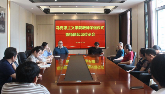 7月10,马克思主义学在学院302会议室召开 “教师荣退仪式暨师德师风传承会”。退休教师、院领导及青年教师代表参加会议。